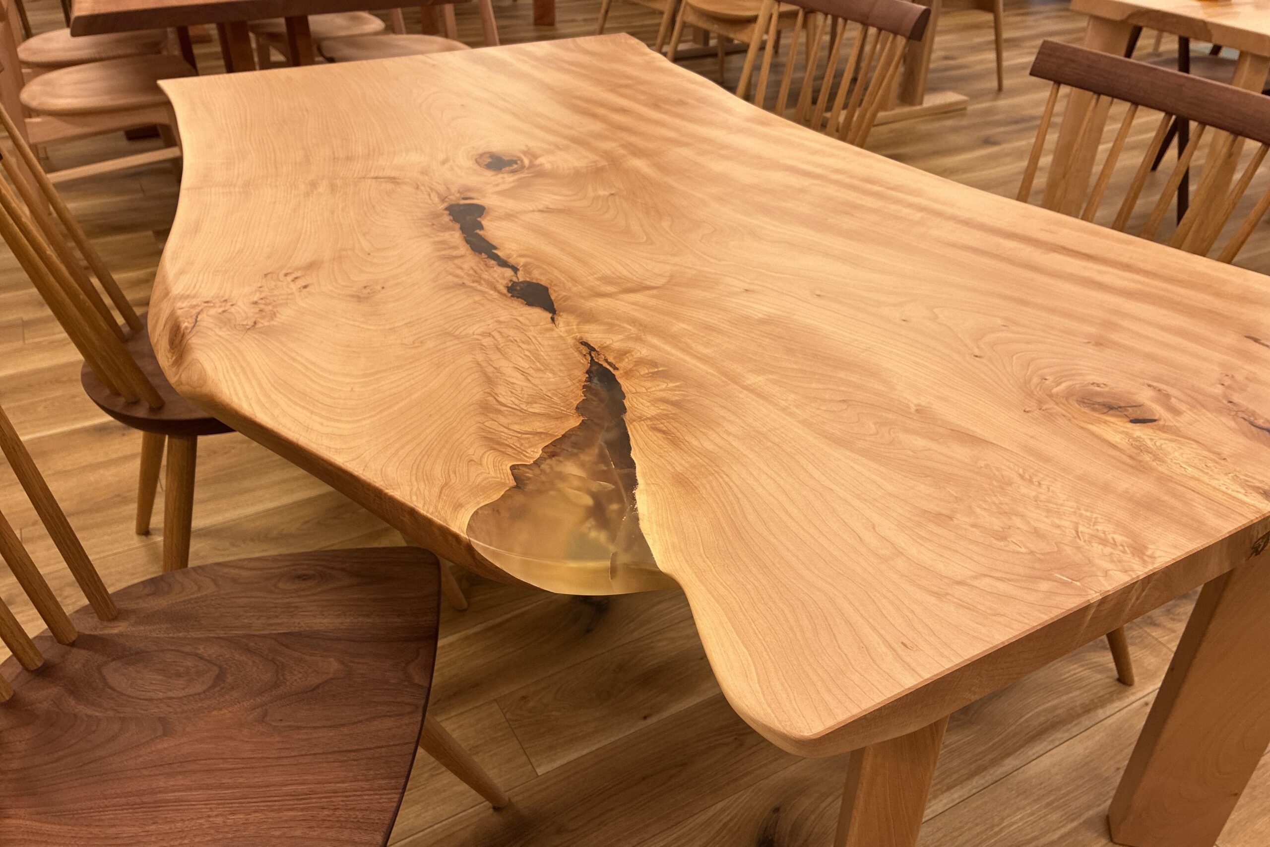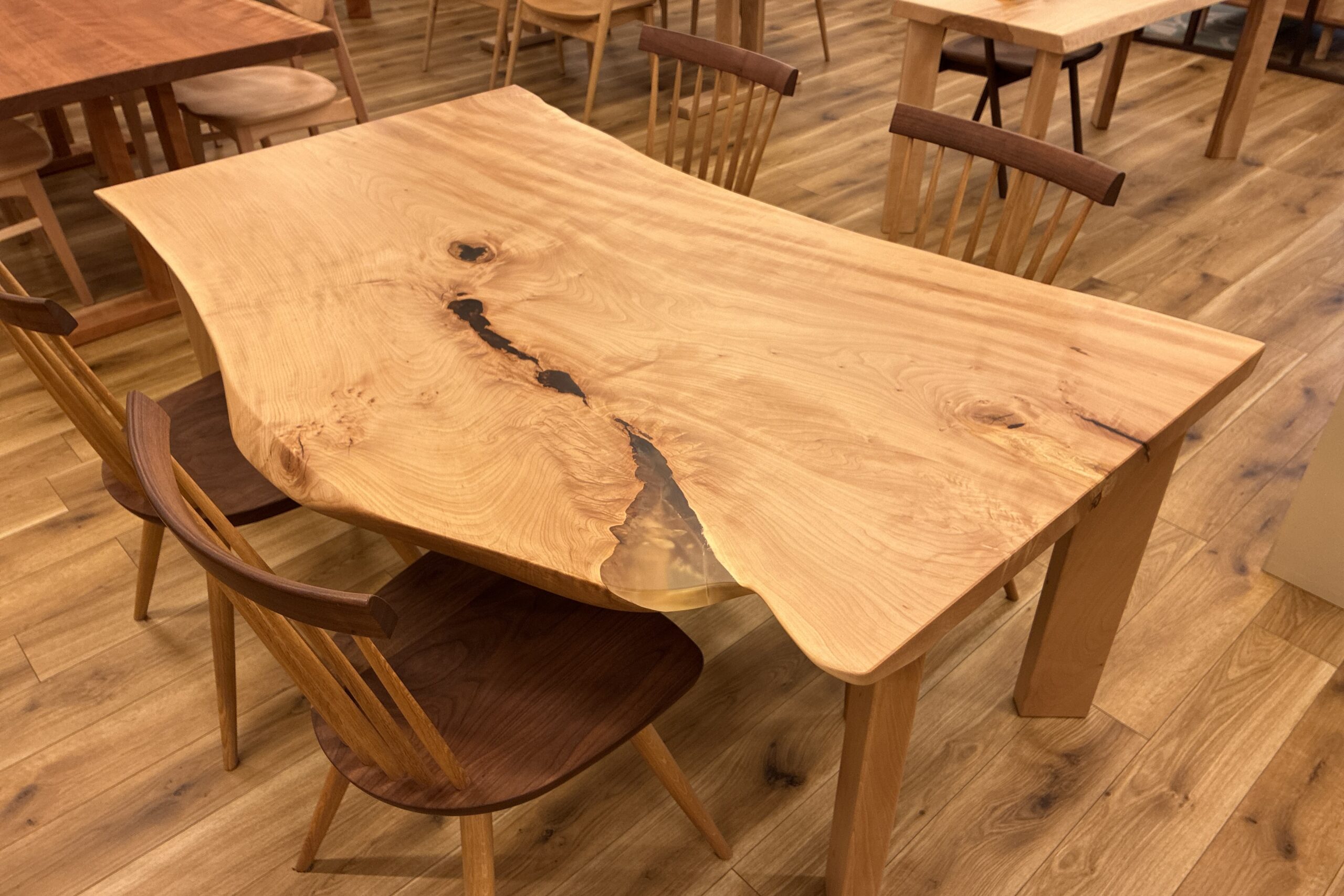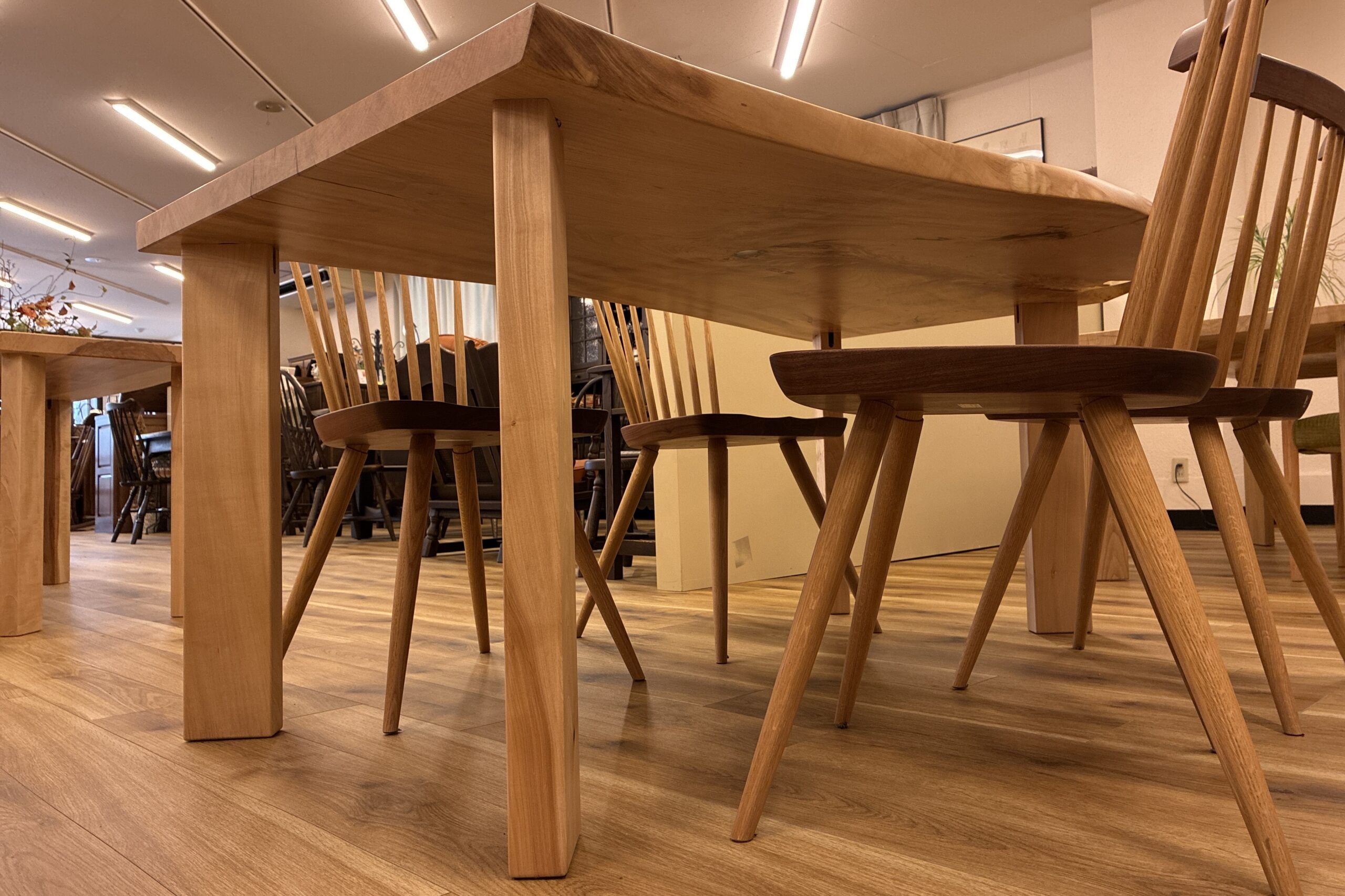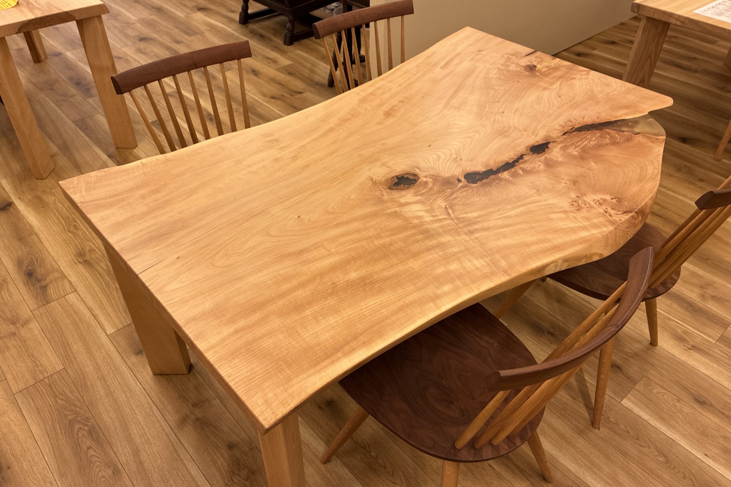 自然の曲線が美しい栃(トチ)一枚板のテーブルです。